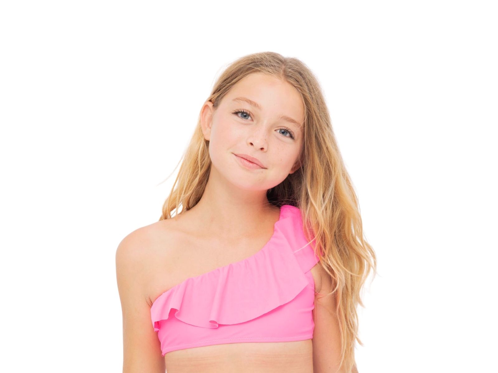 Pastel Beach Babe Gold Ruffle Swimsuit