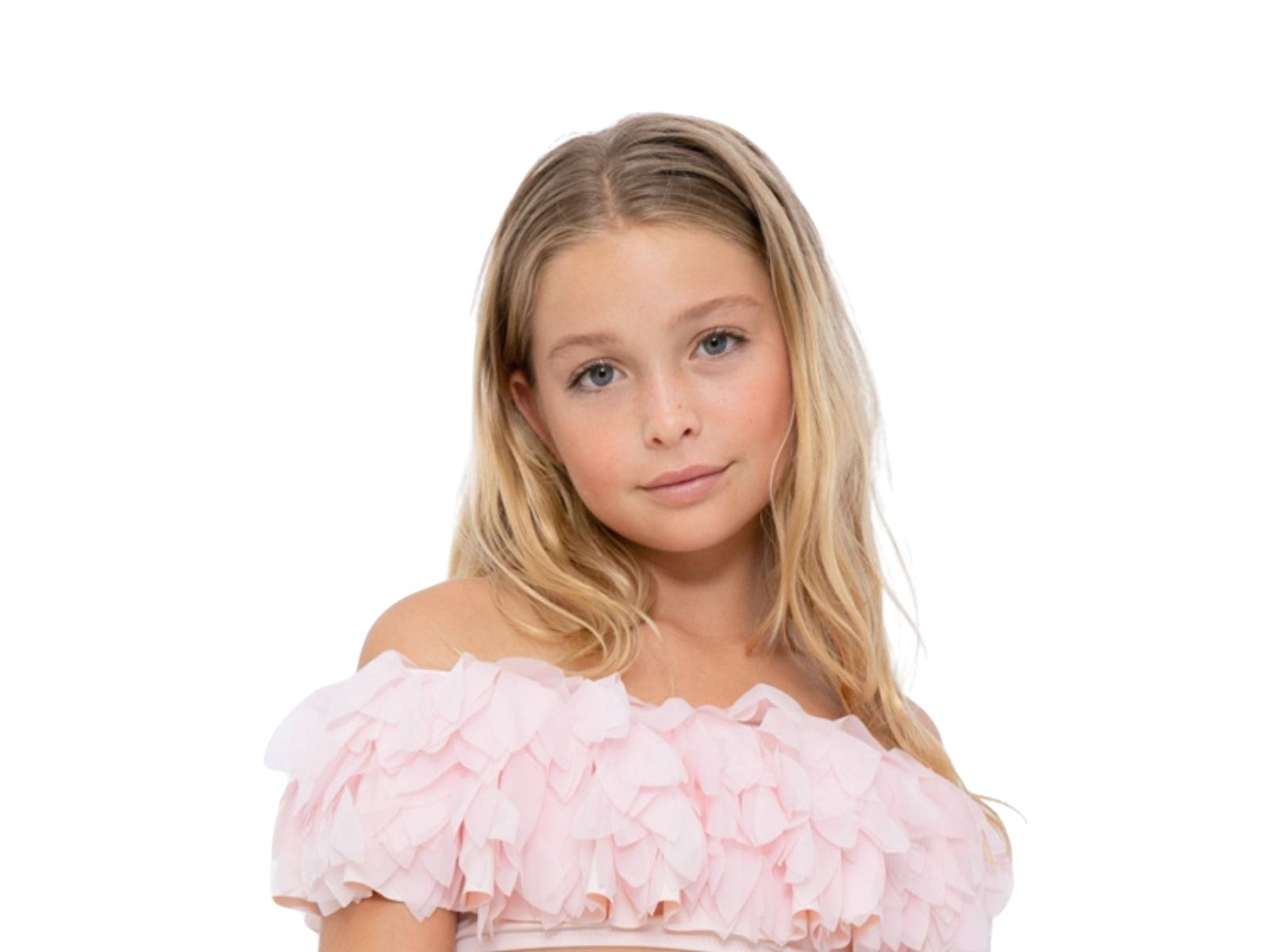 Pastel Beach Babe Gold Ruffle Swimsuit