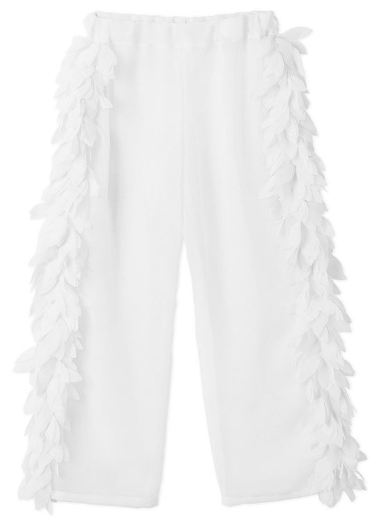 White Cover-Up Beach Pants with Petals