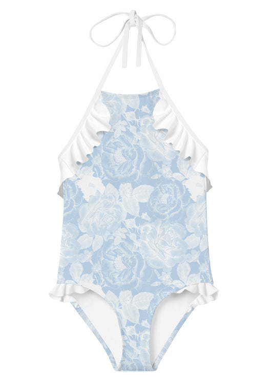 Rainbow Swimsuit with Pink Metallic Ruffles